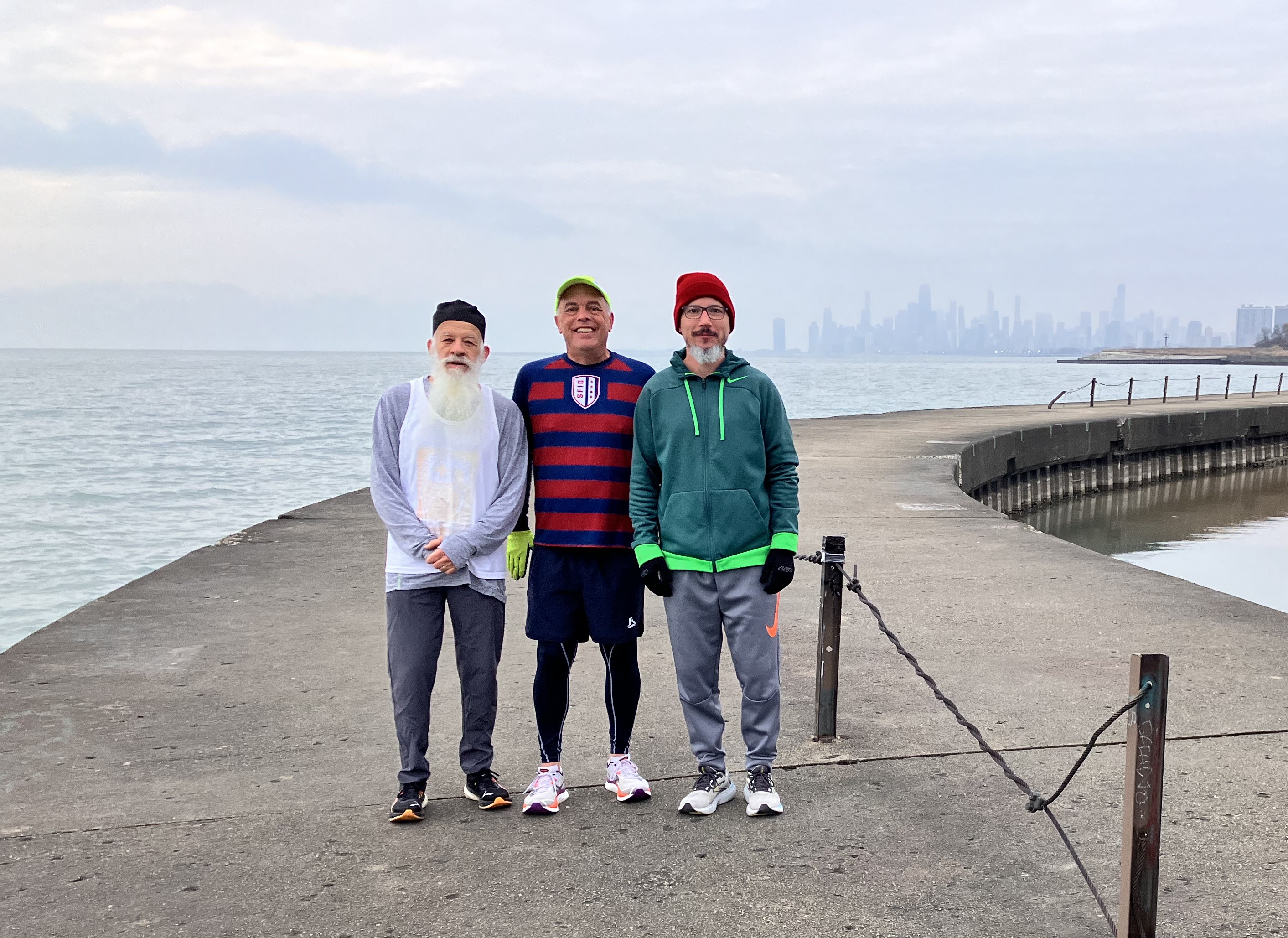 Pictured above Ted, Fred, and Peter, posing along the Chicago Lakefront that they will run the full length of this spring.